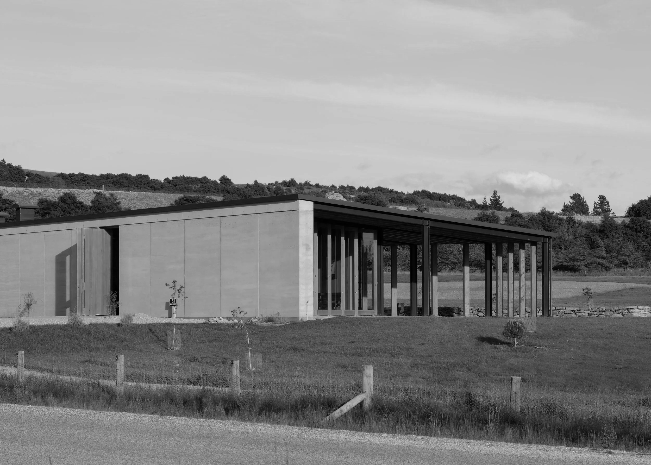 Architect Guy Tarrant imagined this building as ‘a collection of sticks propped up by a rammed earth wall’. In this case, the ‘sticks’ are locally grown macrocarpa and the stunning earth wall is crafted from soils sourced in the nearby Cardrona Valley.